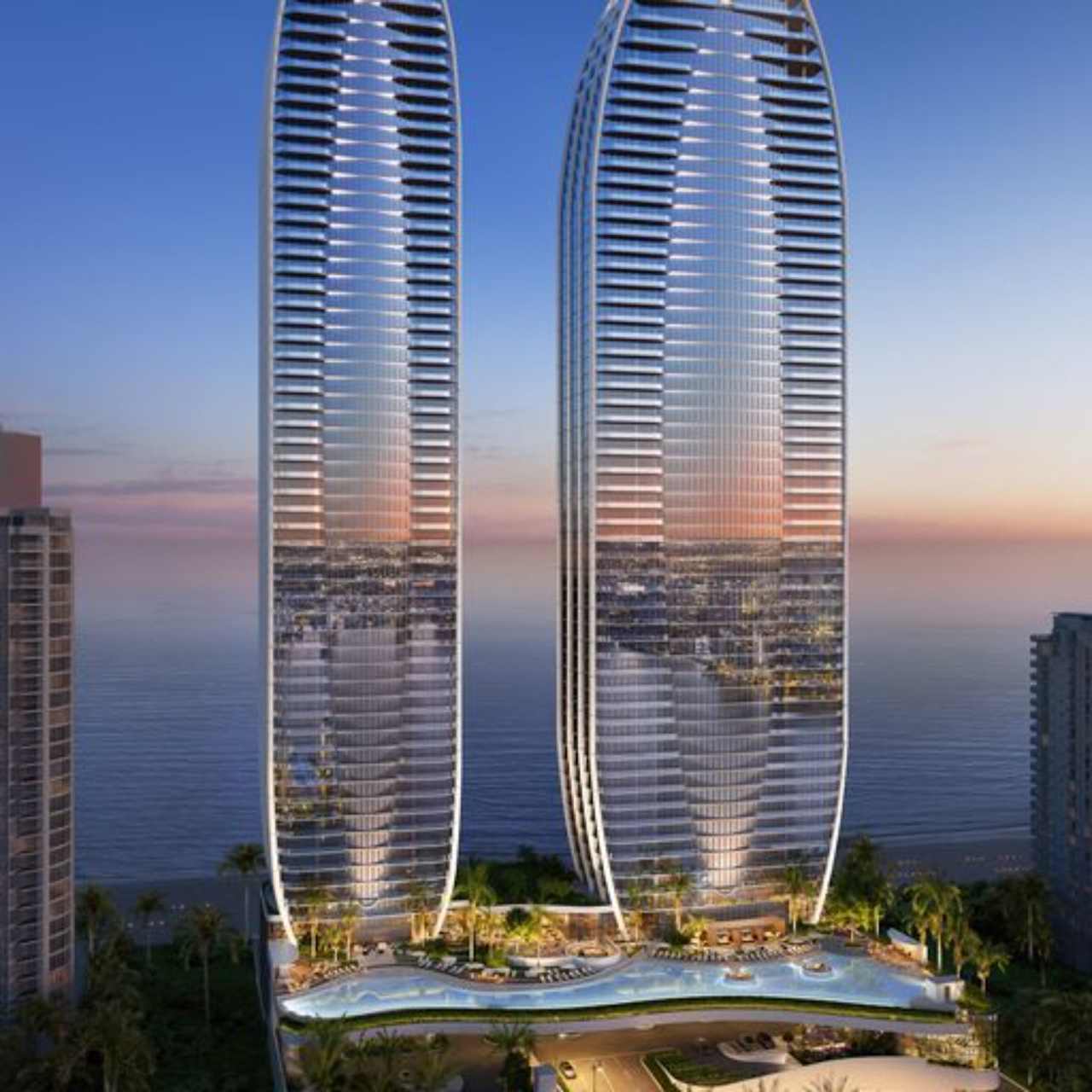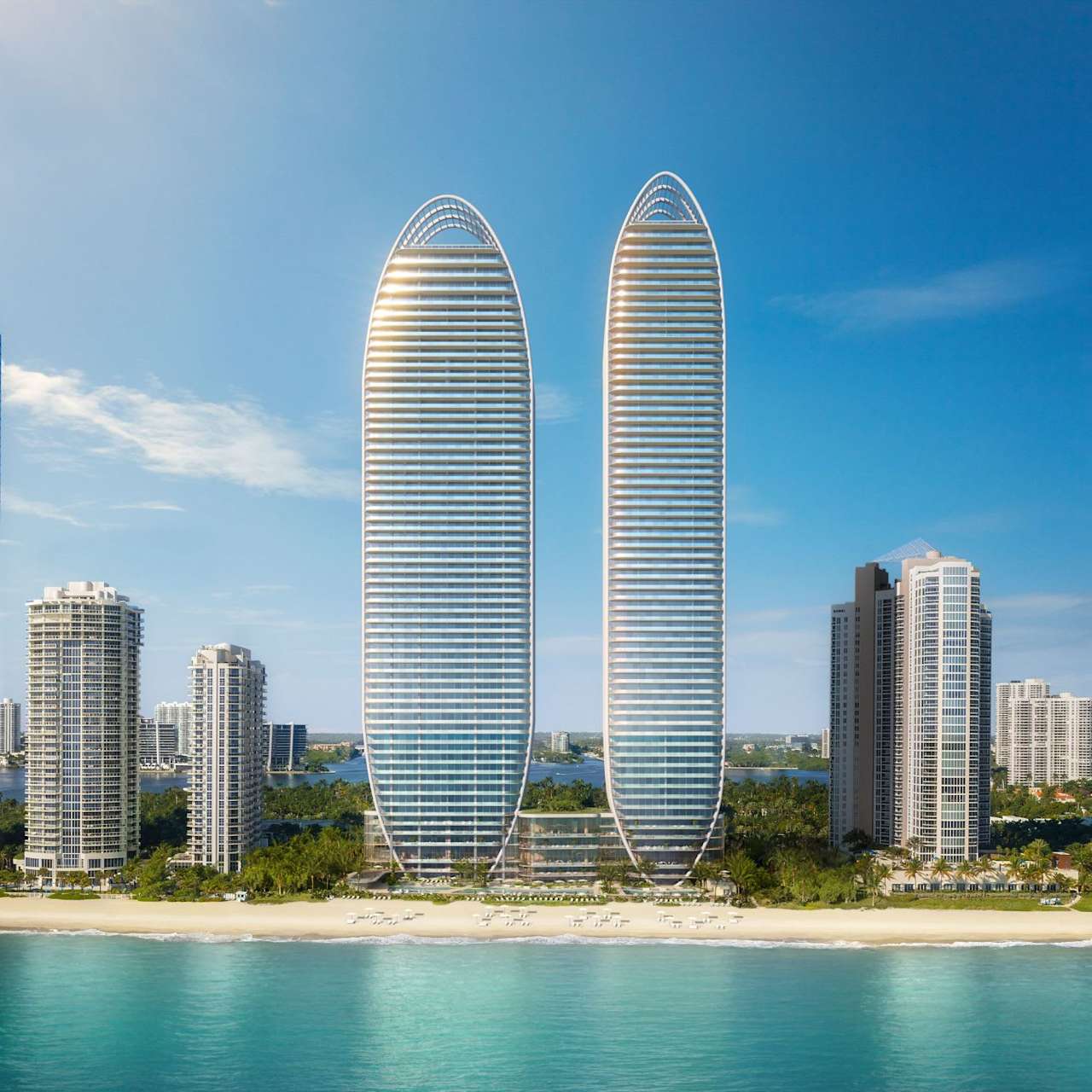 • 2 towers situated on 4.7 acres and 435 linear feet of oceanfront in Sunny Isles Beach, Miami